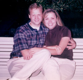 Ficamos noivos no dia 8 de agosto de 1998, após um romântico jantar à luz de velas no "Grub Steak Restaurant" em Park City. Após jantarmos, nós fomos dançar no deck do restaurante, aonde a lua estava linda! Marco cantou "Fools Rush In" (Elvis Presley), uma das minhas músicas favoritas, e logo após se ajoelhou e me abriu uma caixinha com um lindo anel de brilhantes, me pedindo em casamento. Ele nem conseguiu terminar o pedido, eu já fui gritando "sim, sim! É claro que eu quero!" |